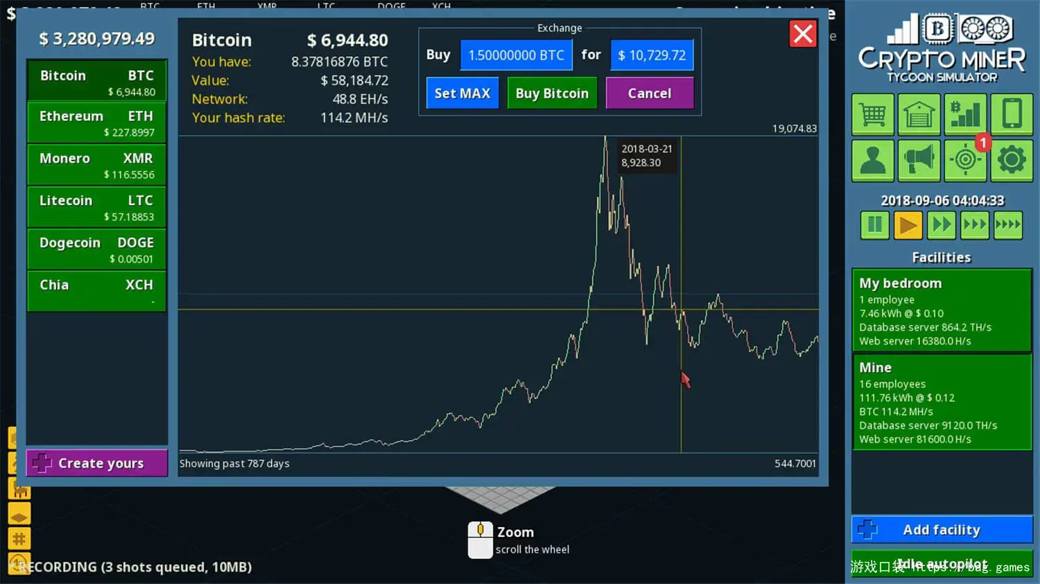在《挖矿大亨模拟器/Crypto Miner Tycoon Simulator》中,你将建造钻机来挖掘比特币、以太坊和其他加密货币。在市场上进行交易以增长财富,扩展你的业务到新的办公室。雇佣熟练的员工并分配任务,使用你的巨型农场的现金来研究新技术,达到每个场景的目标。体验从小规模挖矿到成为加密货币大亨的激动人心的旅程!
